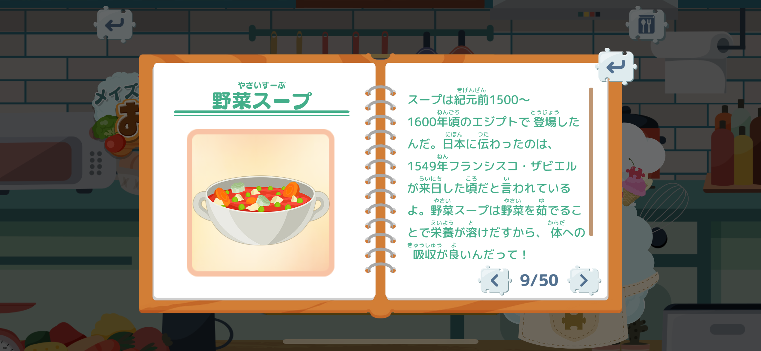 お料理ミニゲームは、パズル学が生活でどのように活用されているかが体験できるゲームです。
