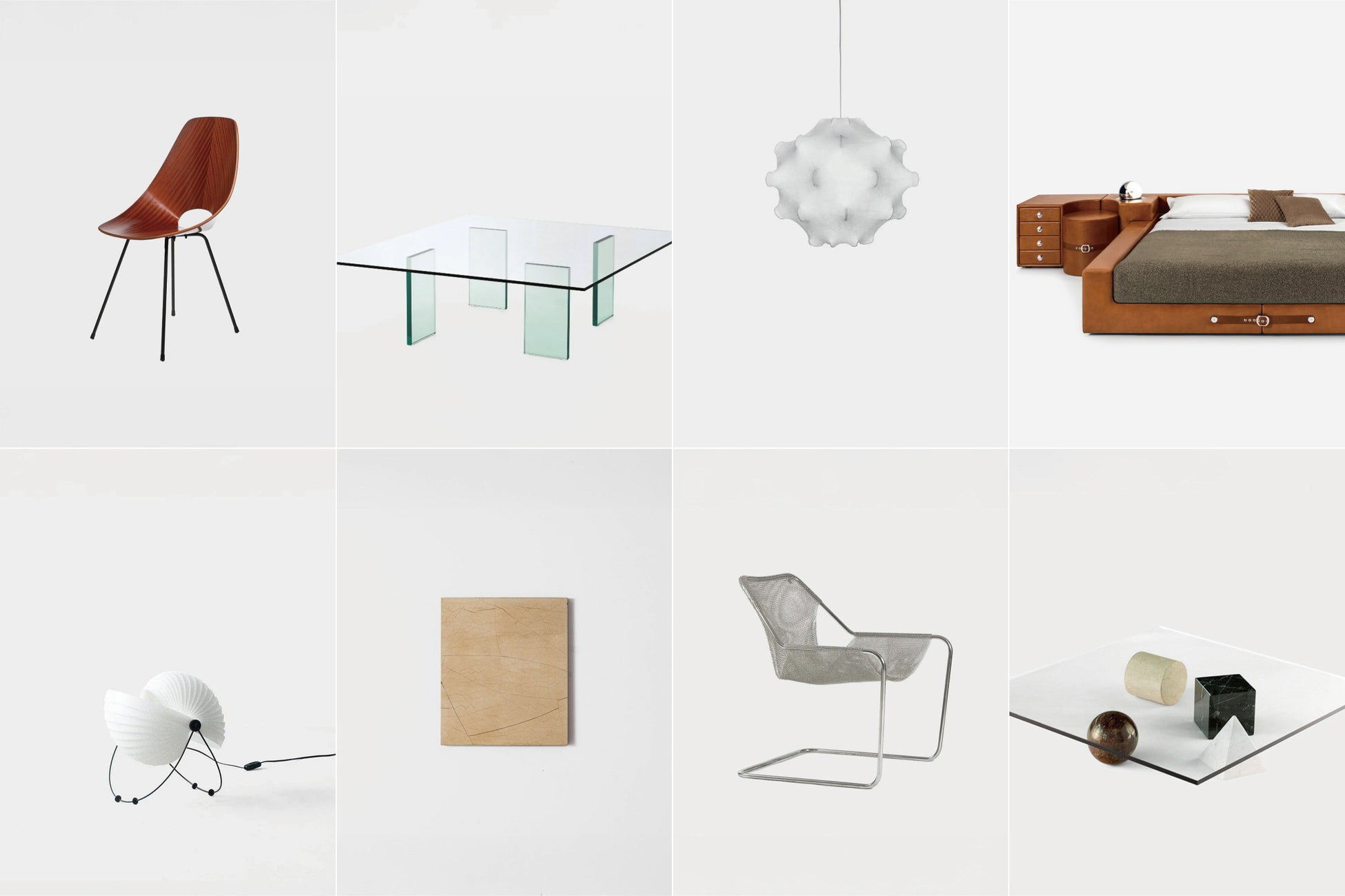 これまでEC上で取り扱いのあった、ジオ・ポンティ、ガエ・アウレンティなどとコラボレーションを果たした「FontanaArte社」の照明。同じくジオ・ポンティ、イニャツィオ・ガルデラなどがデザインしたプロダクトを復刻する「TATO社」の照明。建築家グイド・ファレスキーニと「4 MARIANI社」のコラボレーションによって69年にデザインされたTUCROMAシリーズ。エリオ・マルティネリやマッシモ・ヴィネッリなどのアイコニックなデザインを今も製造する 「Martinelli Luce社」のプロダクト、ヴィットリオ・ノビリによって55年に発表されコンパッソ・ドーロを受賞した 「Medea社」のチェア。京都に拠点を置き、金閣寺などの補修を手掛ける漆の塗り師集団「牧野漆工芸」と共同開発したアートパネルなどを含む全18ブランドから、歴史上のアイコニックなデザインのプロダクトを中心に展示・販売いたします。