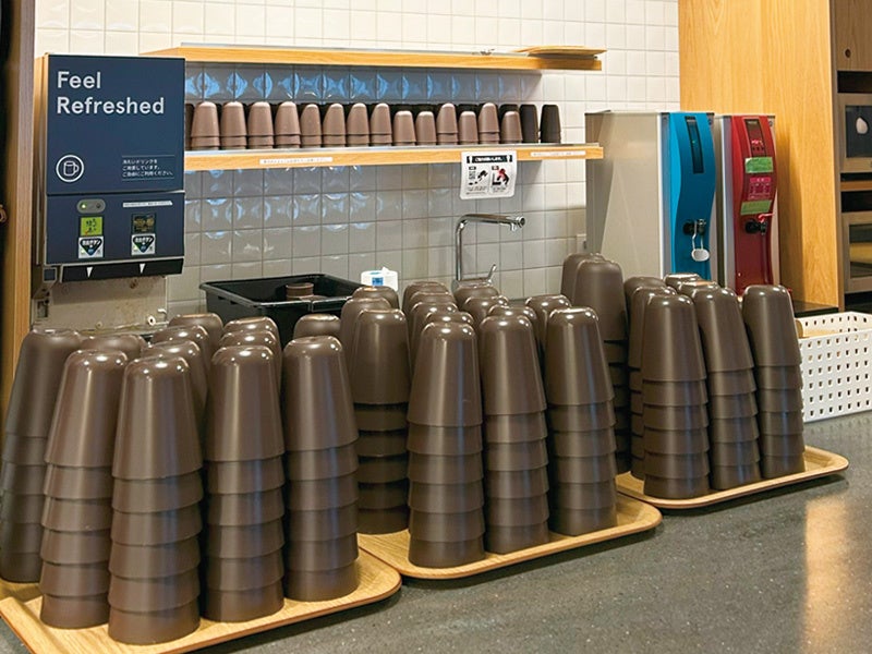ソフトバンクはこれまで、持続可能な社会の実現に向けたさまざまな環境・社会・ガバナンス(ESG)活動を進めてきましたが、新型コロナウィルス感染予防に対応するため、社内の各階ラウンジで使用するカップ及び蓋を全て使い捨ての紙コップ・プラスチック製蓋を採用していました。パンデミックが収束する中で、使い捨てカップ・蓋を繰り返し使用可能なカップ・蓋に変更することを検討し、環境負荷の低減を目指してサステナブルプロダクトブランド『PAPLUS®』を展開するカミーノに相談を行いました。