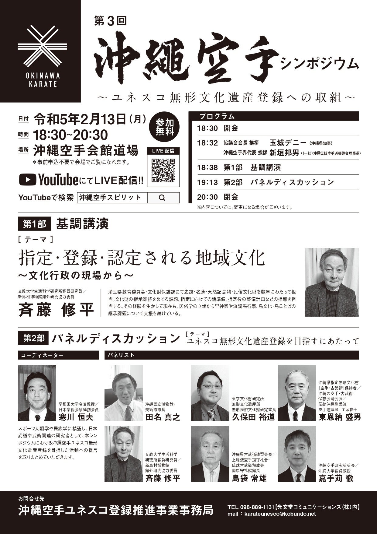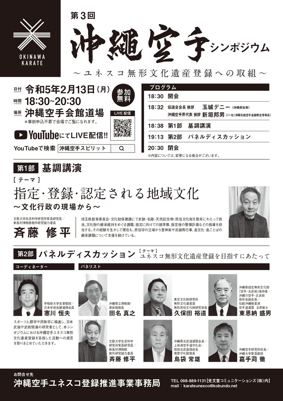 令和5年2月13日(月)18:30〜20:30〜 第3回 沖縄空手シンポジウム開催 〜