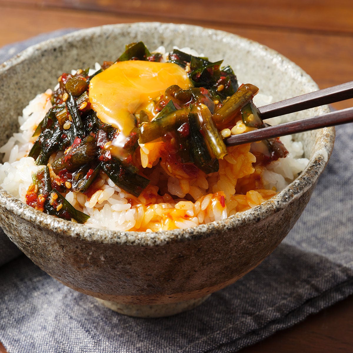 国産ニラをたっぷり使用した醤油ベースのやみつきスタミナ万能調味料。ニラの力強い風味と唐辛子のピリッとした辛さが食欲を刺激します。ほかほかご飯にたっぷりかけて卵黄をのせて食べるのがおすすめです。冷やしうどんやそうめんのトッピング、チャーハンや炒め物の味付けとしても◎