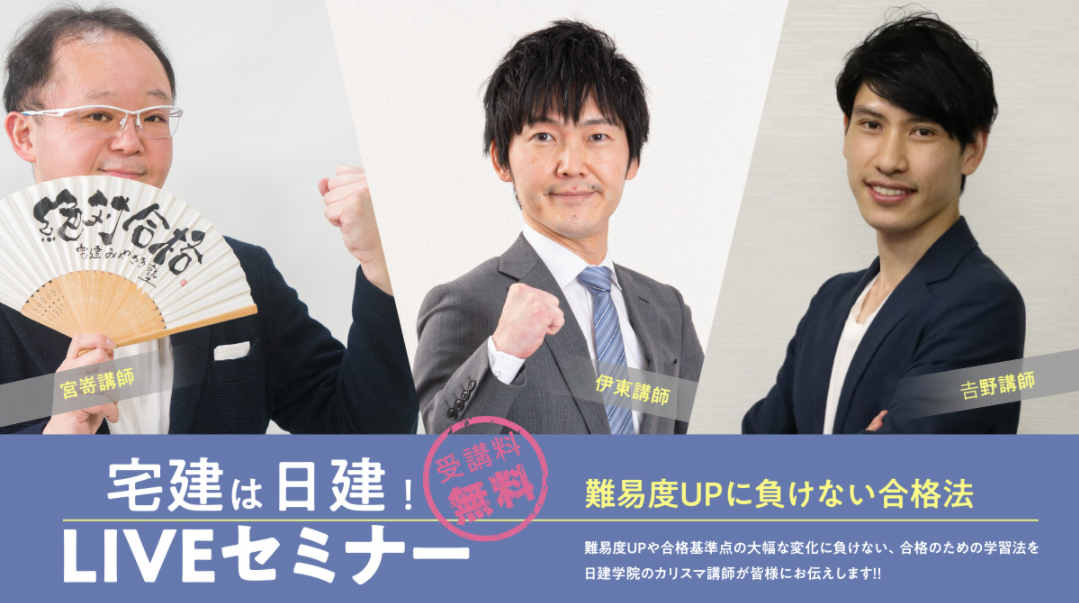 このような近年の試験傾向を踏まえて、宅建試験に合格するための秘訣を、日建学院のカリスマ講師陣がお伝えします!2022年度の宅建受験をされる方必見です!