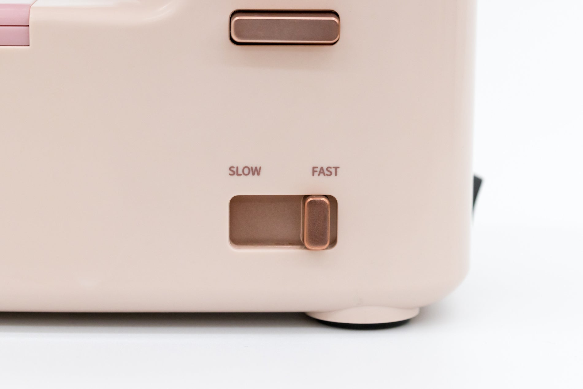 子育て世代でもなく、シニア世代でもない、輝く大人世代により楽しく豊かな素敵な生活を送って頂きたく、使いたいときにサッと取り出し使えるコンパクトサイズの手軽さはそのままに。電子機能を搭載させることで、今までこのサイズのミシンではなかなか実現できなかった、ゆっくりスタートやスピード無段階調節などのより使いやすい仕様に。