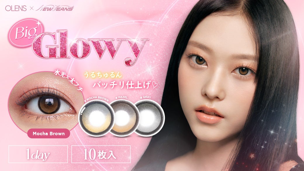 OLENSの中でも圧倒的人気を誇る「グローイ」から、着色直径13.6mmで可愛さ倍増の「デカ目水光カラコン」が新登場。
