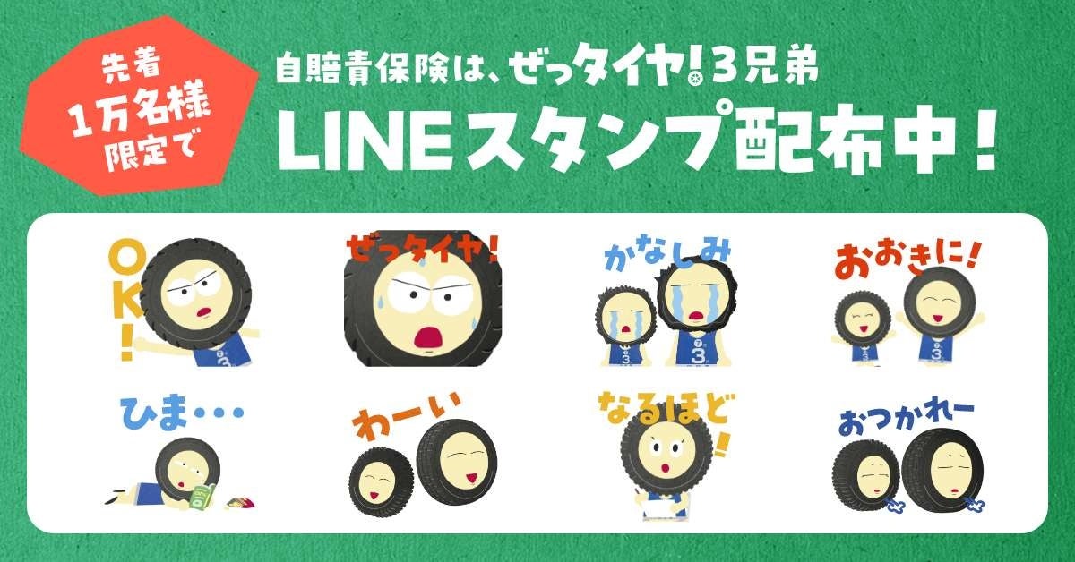 先着1万名様限定で、ぜっタイヤ!3兄弟のLINEスタンプを配布します。ぜっタイヤ!3兄弟の可愛さを活かしたバラエティ豊かなラインナップを取り揃えています。