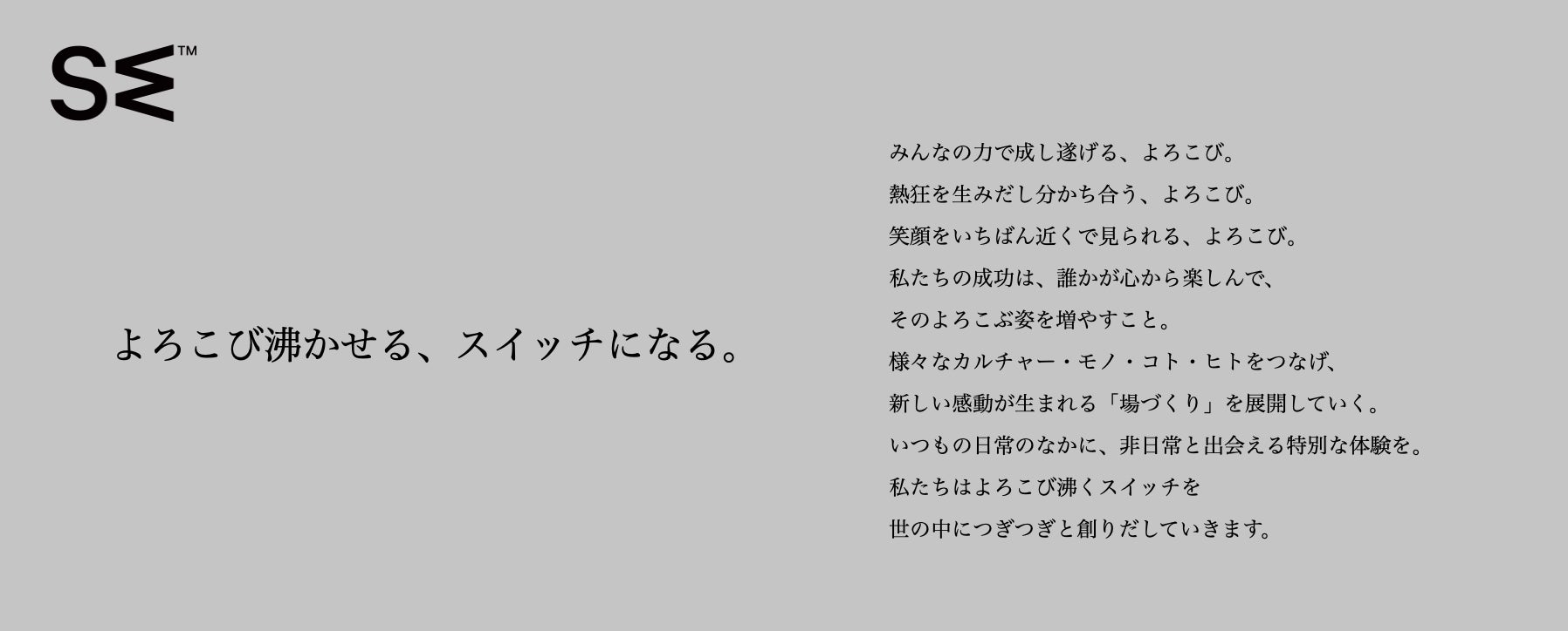 私たちSWITCHHグループは、「よろこび沸かせる、スイッチになる。」というミッションのもと、お客様をはじめ、関わるすべての方々に心からの楽しさと感動をお届けすることを心がけています。