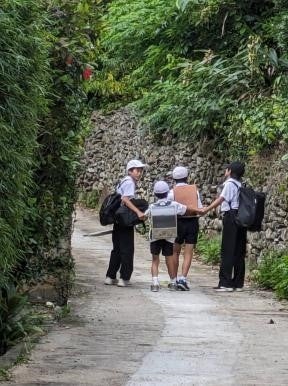 現在は、関西・関東圏より、小学生3名(4・5・6年生)、中学生2名(1年生)と里親の実子(小学2年生)の計6名が留学生として与路小中学校に通っています。