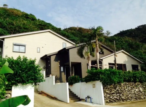 与路グリーンハウスは2014年に建築された木造2階建、延床面積200平米の建物で、留学生が食事や勉強をする広いリビング、留学生用個室が6部屋、留学生をサポートする里親の部屋があります。リビングの窓からは請島や色彩豊かな木々や花を見ることができます。