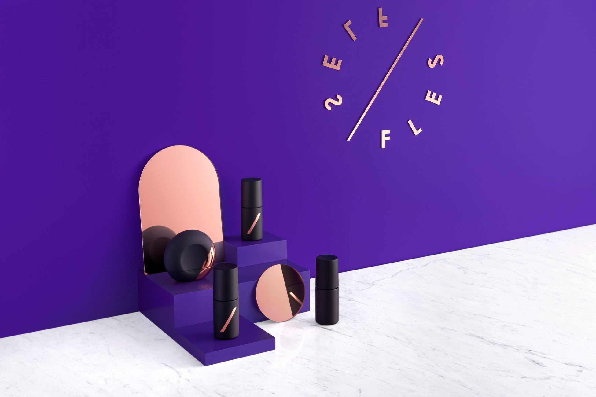 世界の一流ブランド、エルメスやルイ・ヴィトンとのコラボレーションをはじめ、TOKYO2020の聖火台のデザインも記憶に新しい世界が注目するデザイナー佐藤オオキ氏と彼が率いるnendoと生み出した「FLES」。日々刻々と変化する肌の状態に合わせオーダーメイドした最適な製品を届けるサービス形態は、常に自身の変化が反映される様子がまるで「鏡」のようであることから、「SELF=自分」という文字が反転した「FLES」というブランド名に。