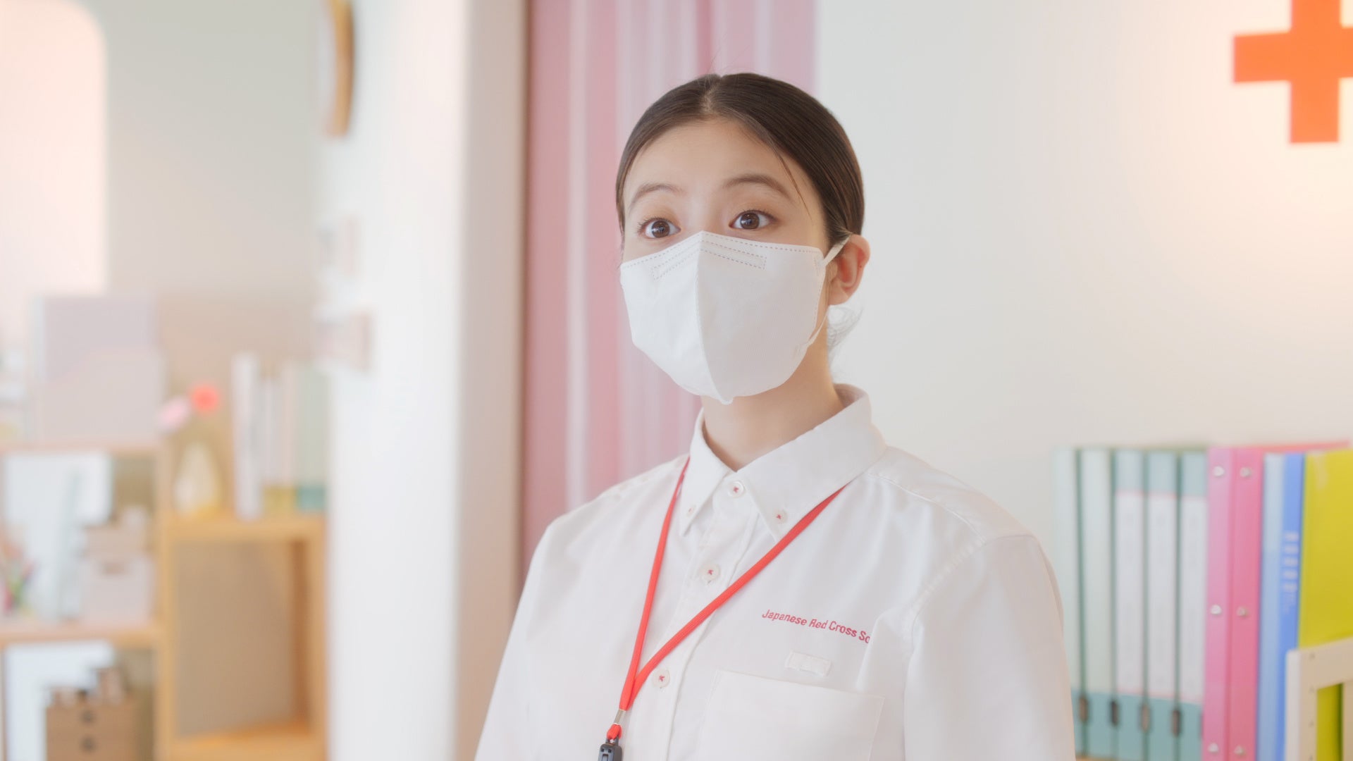 「日本赤十字社のCMに出演させていただきました今田美桜です。今回、CMに出演させていただいて、まだまだ自分の知らないことがたくさんあるなと思いましたし、それをぜひ皆様にお伝えし、誰かの力に少しでもなれたら良いなと思います。ぜひご覧ください!」