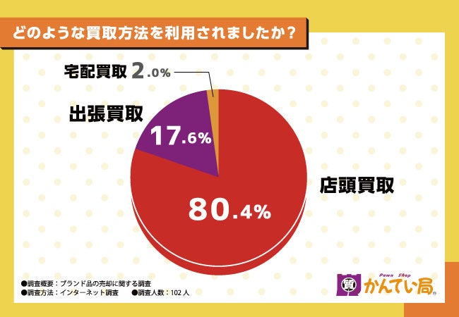 買取方法として最も多かったのは『店頭買取』で8割を超える回答がありました。