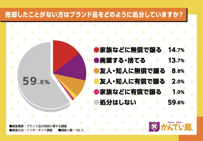 そこで今回、株式会社シンク(https://www.kanteikyoku-shikoku.jp/)と共同で、全国20〜60代の男女102名を対象に「ブランド品の売却」に関するアンケートを実施しました。