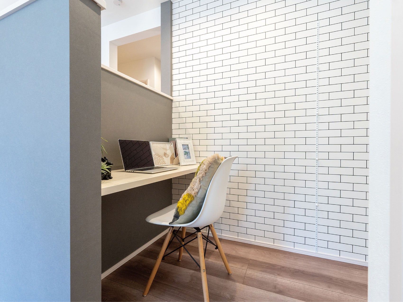 いっしょにいれば安心。目線を遮るだけで、落ち着く、集中できる。家族の集うLDKに半個室のプライベート空間を。家族それぞれ多様な使い方ができるスペースを設けた新たなリビングスタイル。USBコンセントを備えており、テレワークにはもちろん、お子さまのリビング学習などにもお使いいただけるワークスペースです。