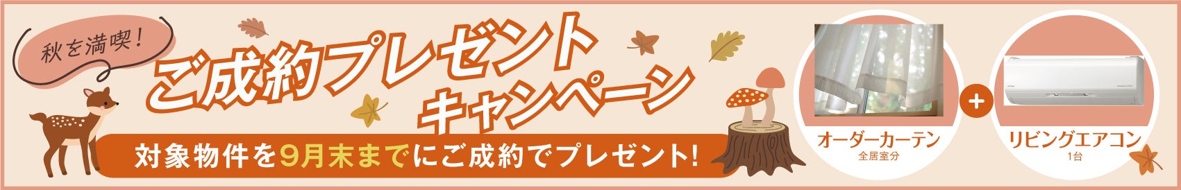 【モデルハウス家具付き販売】9月末までのご成約でリビングエアコン+カーテン全居室分がプレゼントになるキャンペーンも併用可能!初期費用が大幅に抑えられる大チャンス