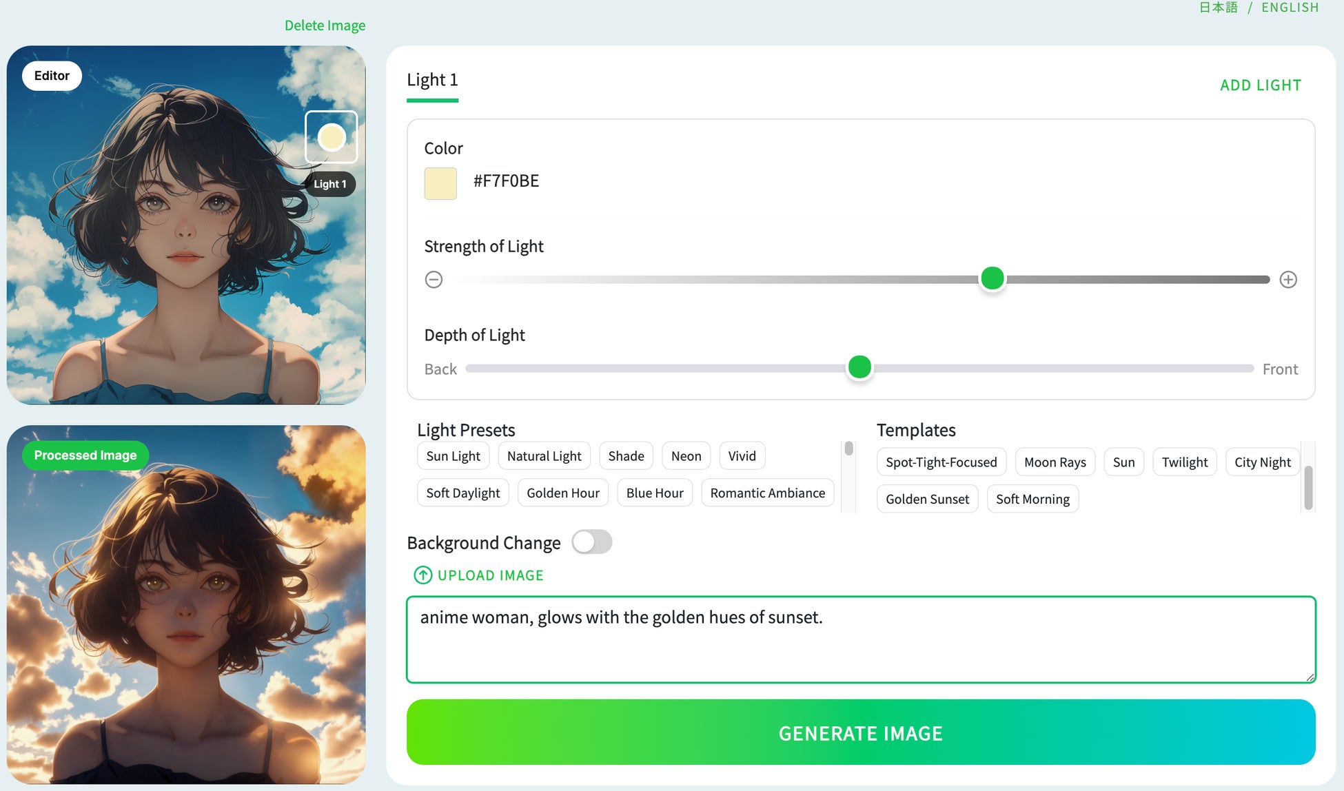6. 画像生成を生成するボタンをクリックし、照明を生成します。