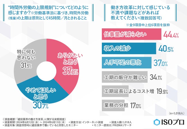 働き方改革によって時間外労働が減ったものの、仕事量の多さや収入の減少、人手不足といった不満や課題を感じていることが明らかになりました。