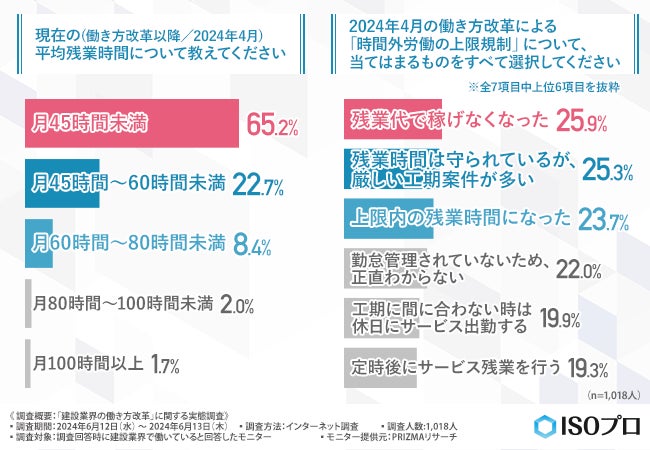 建設業2024年問題の認知度や、「時間外労働の上限規制」によって従業員の働き方に変化が起きていることが明らかになりました。