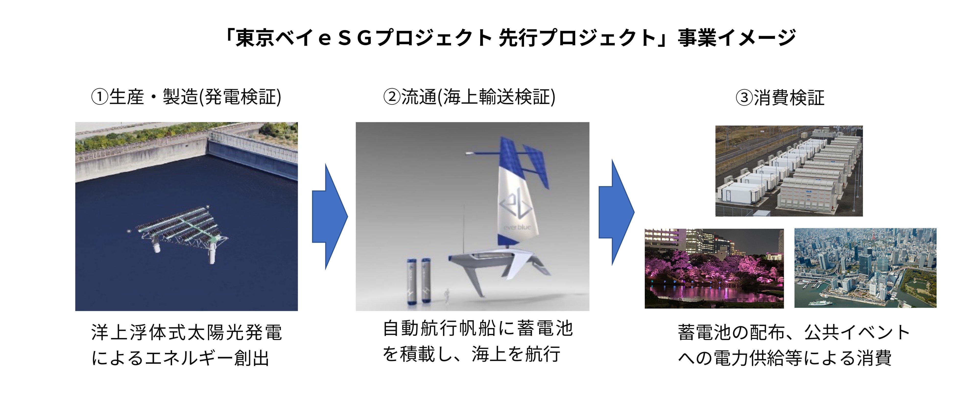 東京ベイエリアにおける最先端技術の社会実装を目指す「東京ベイeSGプロジェクト 先行プロジェクト」において、国内初の洋上浮体式太陽光発電、自動航行帆船の技術実証提案が採択
