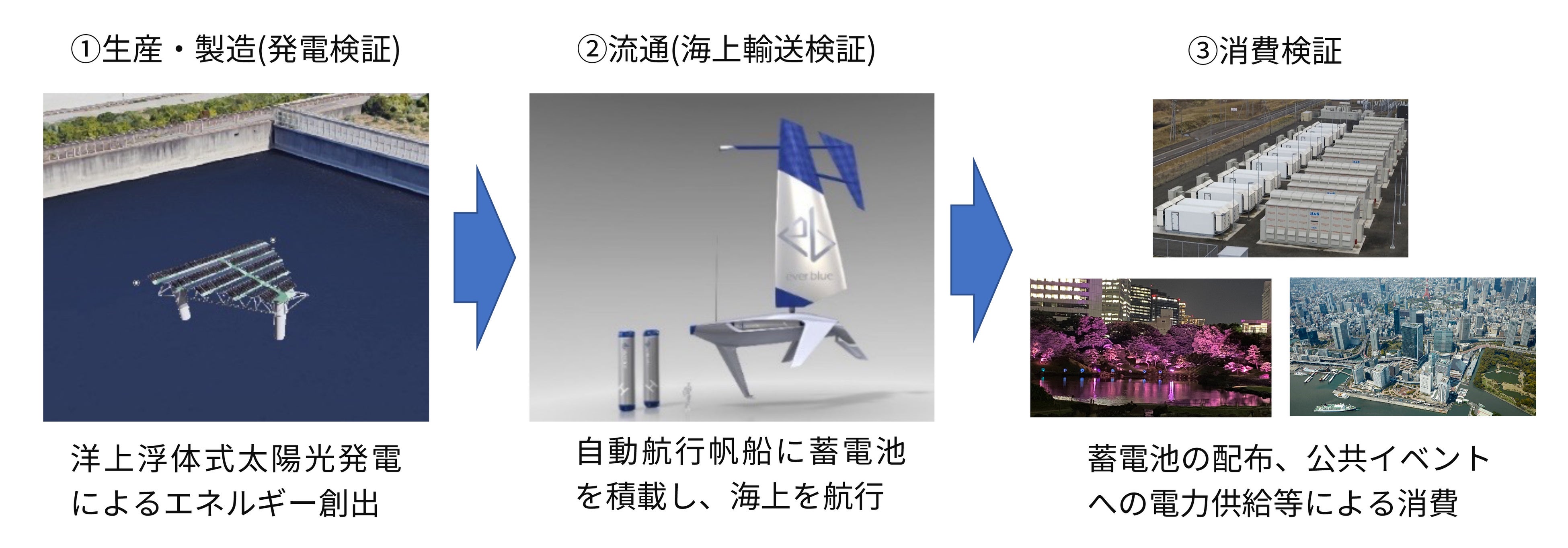 - エバーブルーテクノロジーズ株式会社:自動航行帆船の航行、海上輸送の技術実証 ※連携予定事業者
