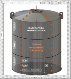 Vinçotte社がNIRAS(放射性廃棄物・濃縮核分裂性物質管理を行うベルギー国家機関)の子会社であるBelgoprocess社から、同社の第二廃水処理施設にあるコンクリートバンカー内の貯蔵タンクの目視検査と肉厚測定を請け負うにあたり、電離放射線の存在と放射能汚染のリスク対策の必要性から、遠隔検査技術の活用が検討されていました。