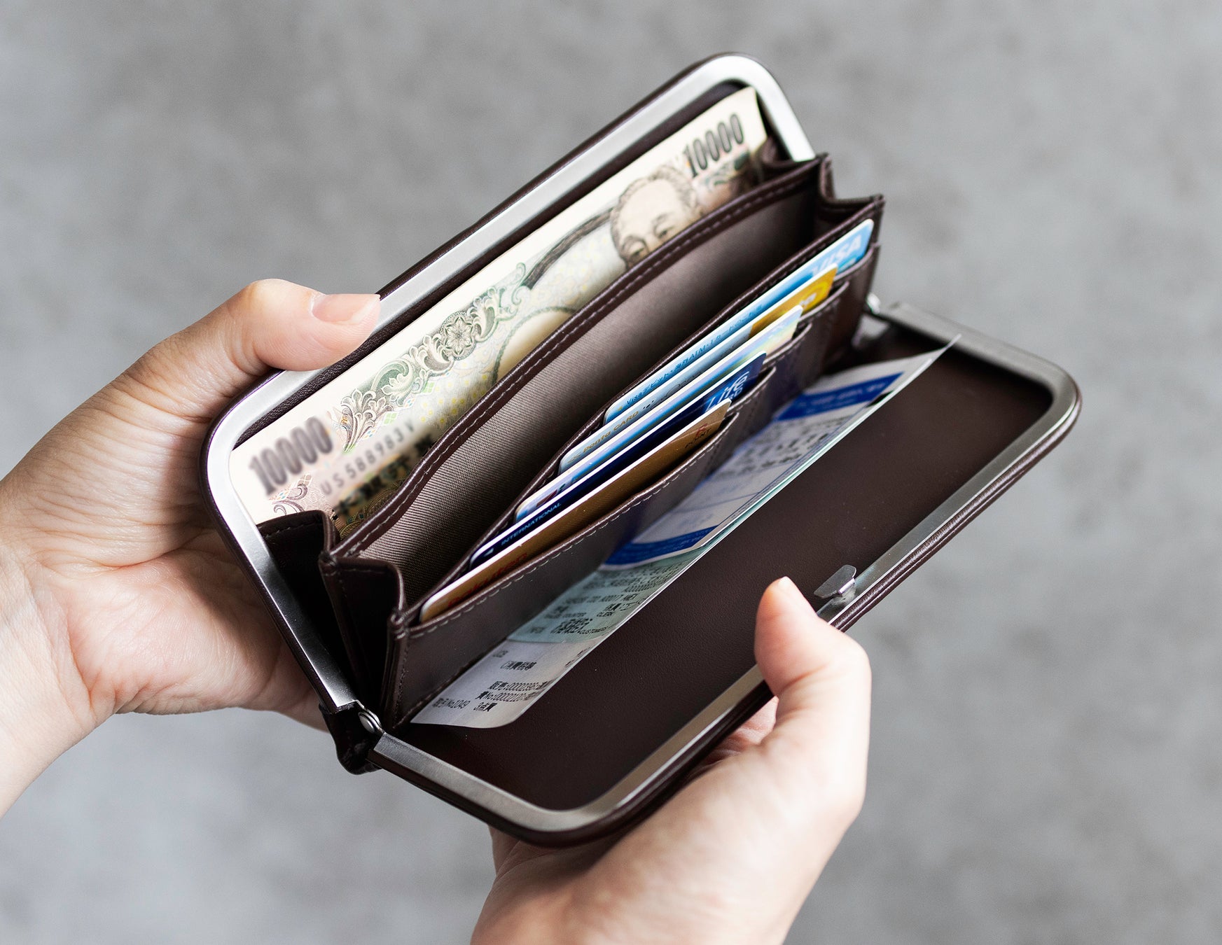 さらに、全ての収納物の出し入れを同じ手で行うことができるため、その都度、財布を持ち替える必要がありません。