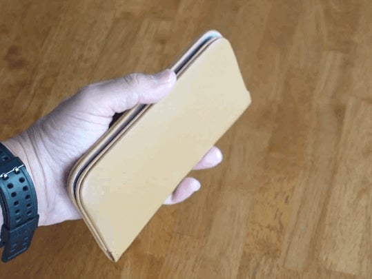 大きめのスマートフォンとほぼ同じサイズで、驚くほど薄く小さい長財布です。