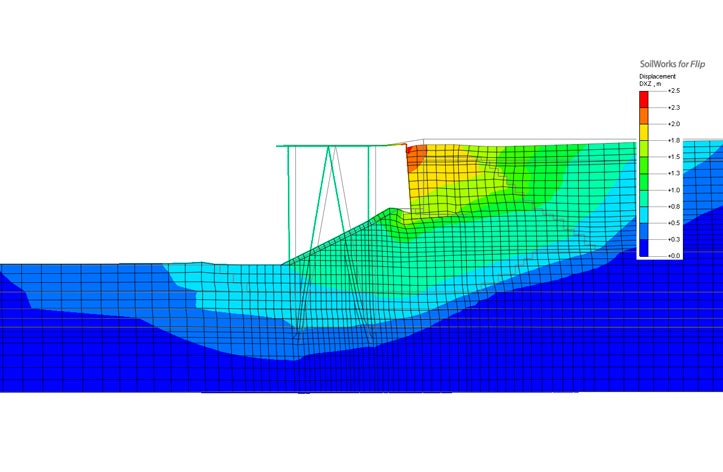 SoilWorks for FLIP(製品のダウンロードはこちら)はFLIP『地震時の液状化による構造物被害予測プログラム』専用のプリ・ポストです。SoilWorksの操作性をそのまま継承しており、AutoCAD感覚でデータを作成することができます。データ作成後は、FLIPを起動させ計算を実行することもでき、FLIP解析のための統合された作業環境を提供します。