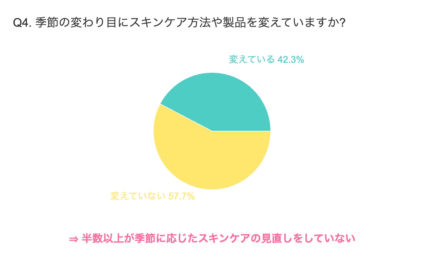 季節の変わり目にスキンケア方法や製品を変えているか調査しました。