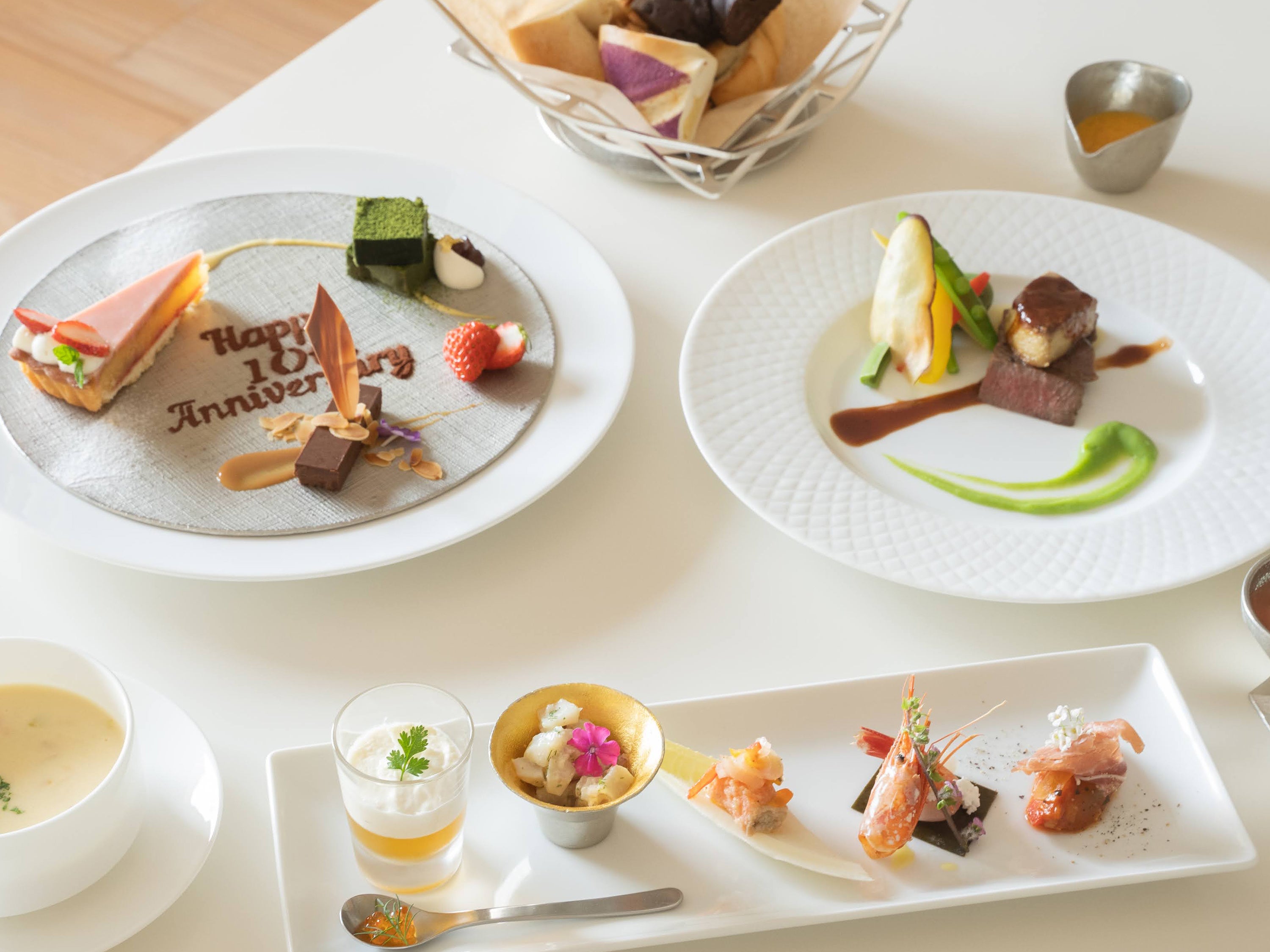当社の錫の食器で、富山県産の食材をふんだんに使用したコース料理を提供します。