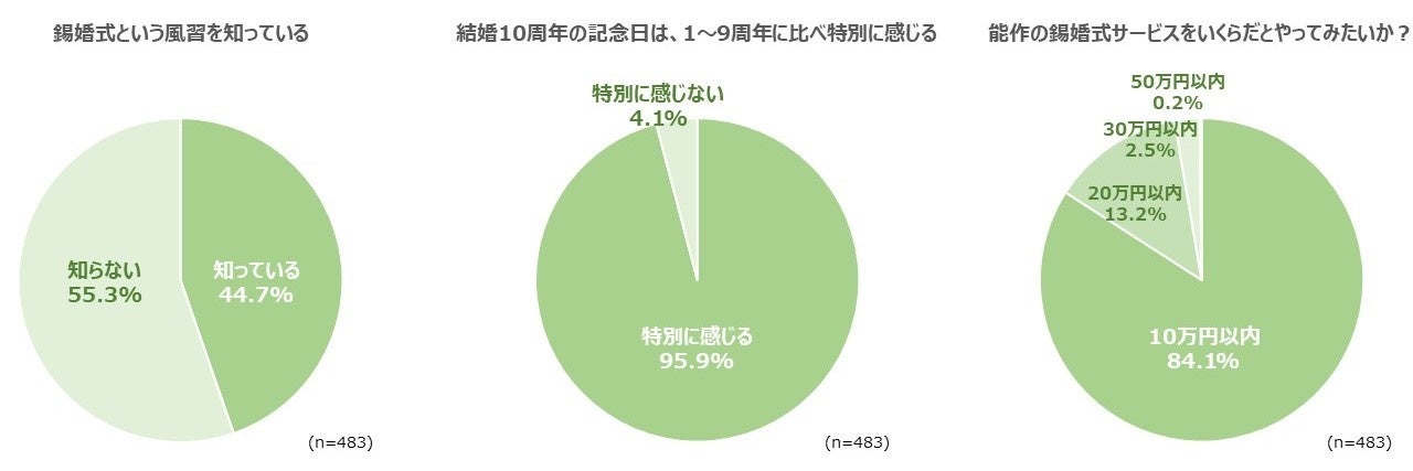 当社は錫の鋳物メーカーとして、素材である錫に着目し、2019年に結婚10周年を祝う錫婚式事業を開始しました。事業開始から3年目の昨年末、サービスの向上を目的とし、結婚10周年以内の方へ独自にアンケート調査を実施しました。(有効回答数483件)