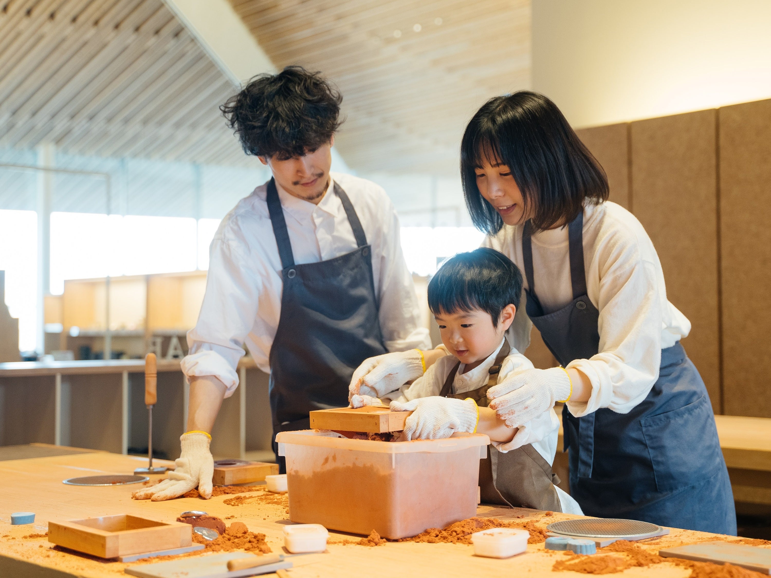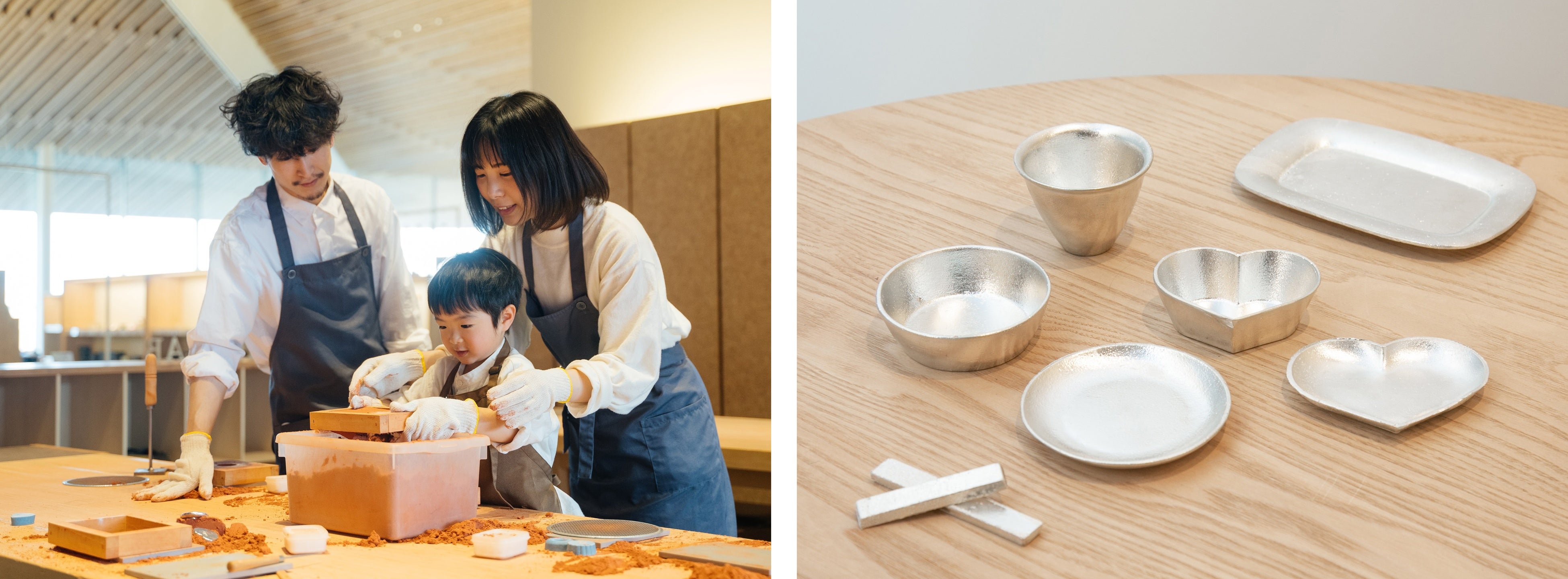 ご家族皆様で錫100%製の記念品を製作します。小さなお子様がいる場合にも、一緒に楽しめるワークショップです。(※製作アイテムにより追加料金発生)