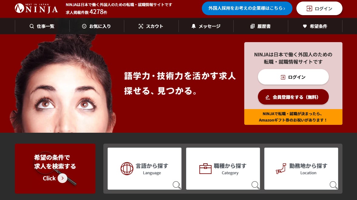 ◆外国人のための転職・就職情報サイトNINJA https://nextinjapan.com/