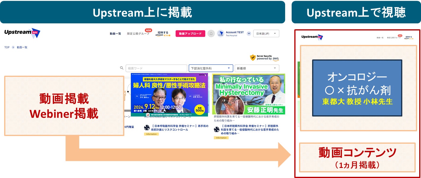 UpstreamはJSERとタイアップした教育サイトであり、多くのKOLが動画を投稿しているため、大学病院、がんセンター等の基幹病院の泌尿器科医が多数視聴している。