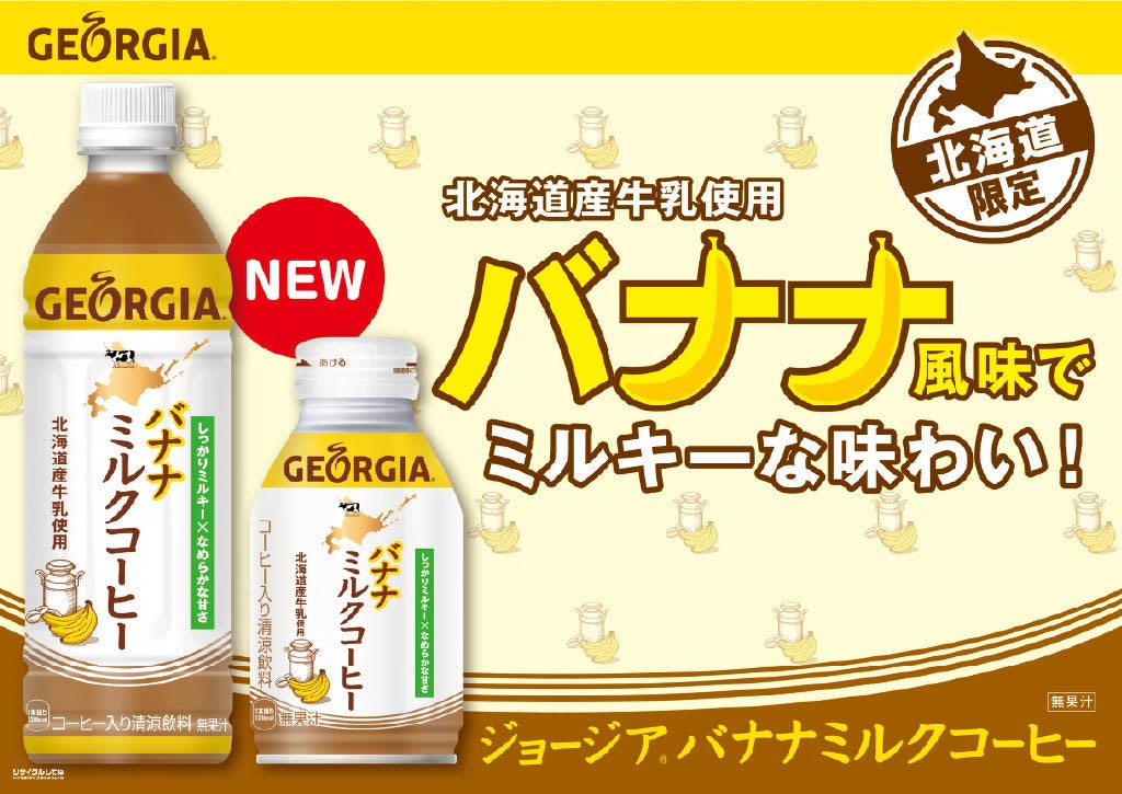 【北海道コカ・コーラボトリング】北海道産牛乳を100%使用した懐かしい味わい「ジョージア バナナミルクコーヒー」が新発売