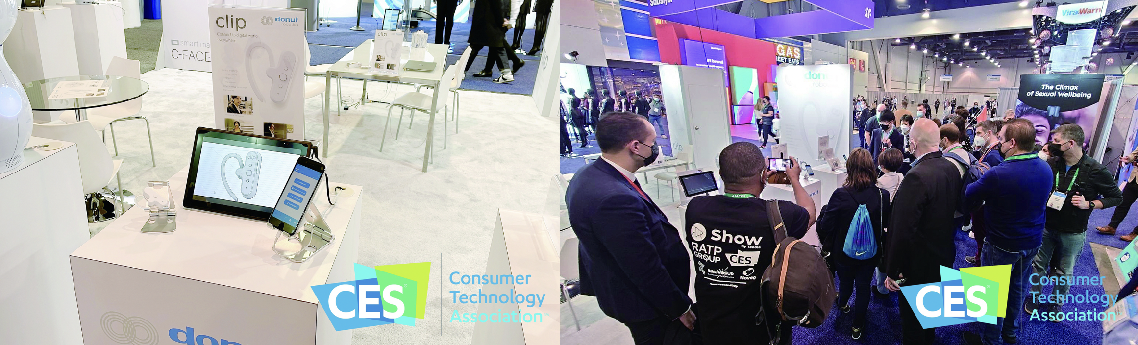 2022年、1月ラスベガスで開催された「CES 2022」(世界家電見本市)では、ドーナッツロボティクス社は単独ブースで出展。その様子は、時事通信ニューヨーク支店から報じられました。その中でも新型イヤホンへの期待は高く、2022年内に米国でも先行予約を行う予定です。