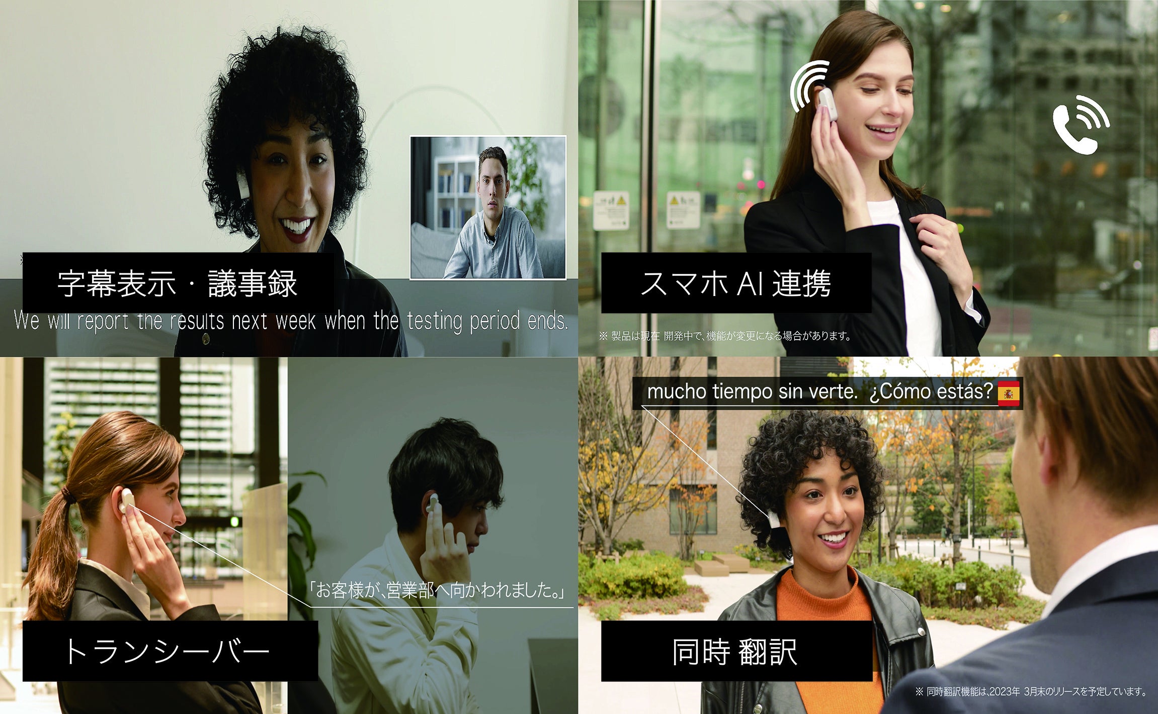 オンライン会議での議事録作成、字幕表示、翻訳を実現し、その他、トランシーバー機能や対面翻訳も実装予定の未来型 多機能イヤホンです。