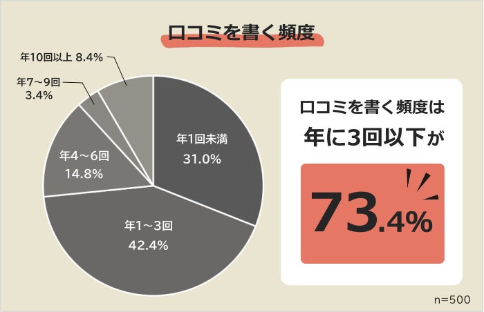 口コミを書く頻度は「年に3回以下」が7割
