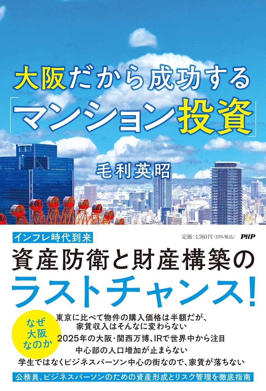 大阪駅前再開発、大阪・関西万博、IR などの大規模投資プロジェクトが続く大阪市。その中心部におけるワンルームマンション投資で、皆さまの資産形成をサポートする株式会社リンクス(大阪府大阪市、代表取締役 毛利英昭、以下「当社」)の代表取締役 毛利 英昭は、『大阪だから成功する「マンション投資」』を PHP 研究所より出版します。11 月 25 日(金)より、順次全国書店やオンラインショップにて販売開始します。