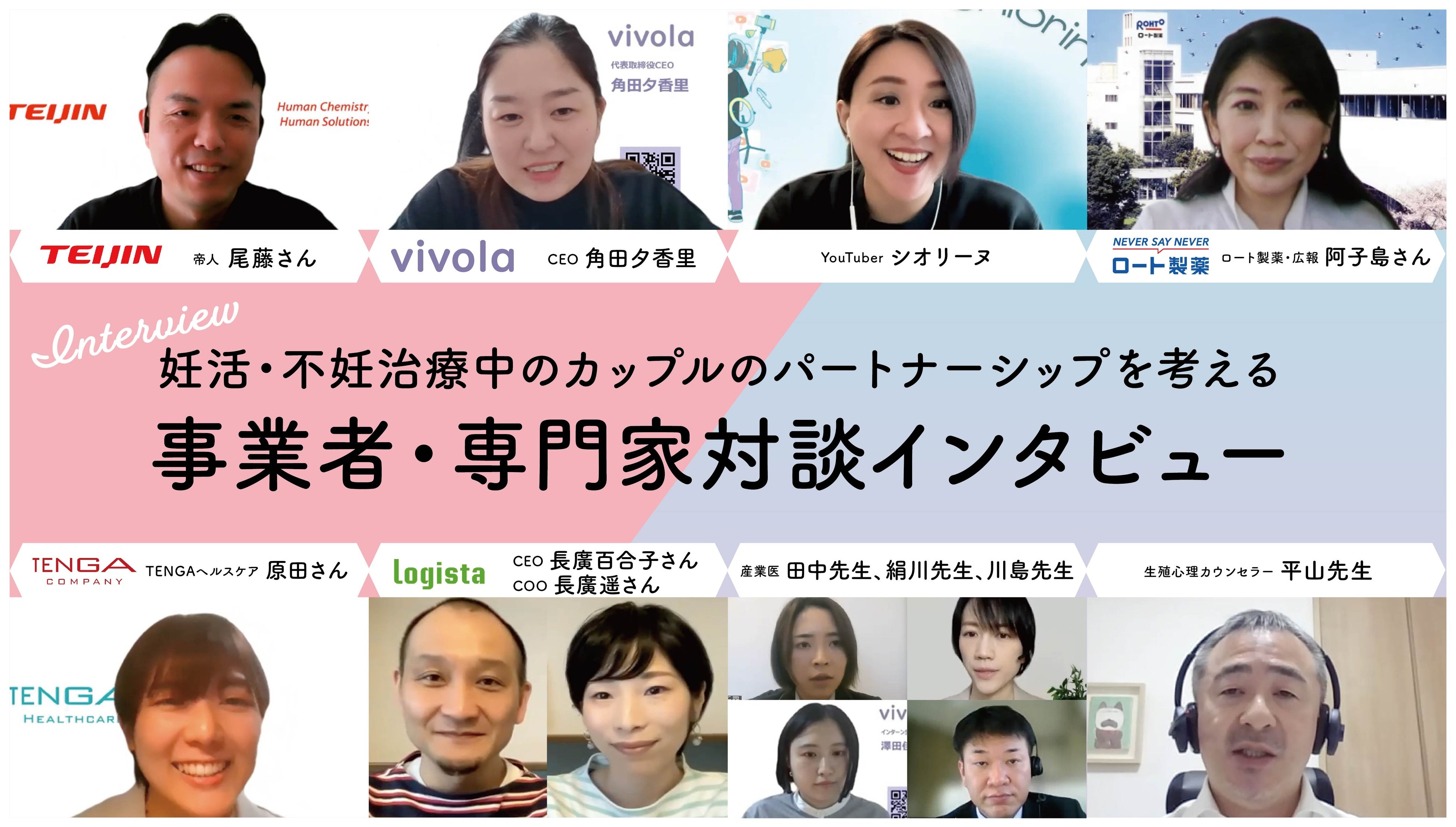 そこで、vivola株式会社、帝人株式会社以外にも、パートナーシップ支援を掲げる以下に記載の事業者や専門家へインタビューを行い、妊活・不妊治療中のカップルが使用できる自社商品やサービスの紹介や、パートナーとの課題解決に向けたヒントをお話いただきました。このインタビューを、Youtube動画として、国際女性デーである3/8㈬から1日1本、計7本のインタビュー動画として配信します。
