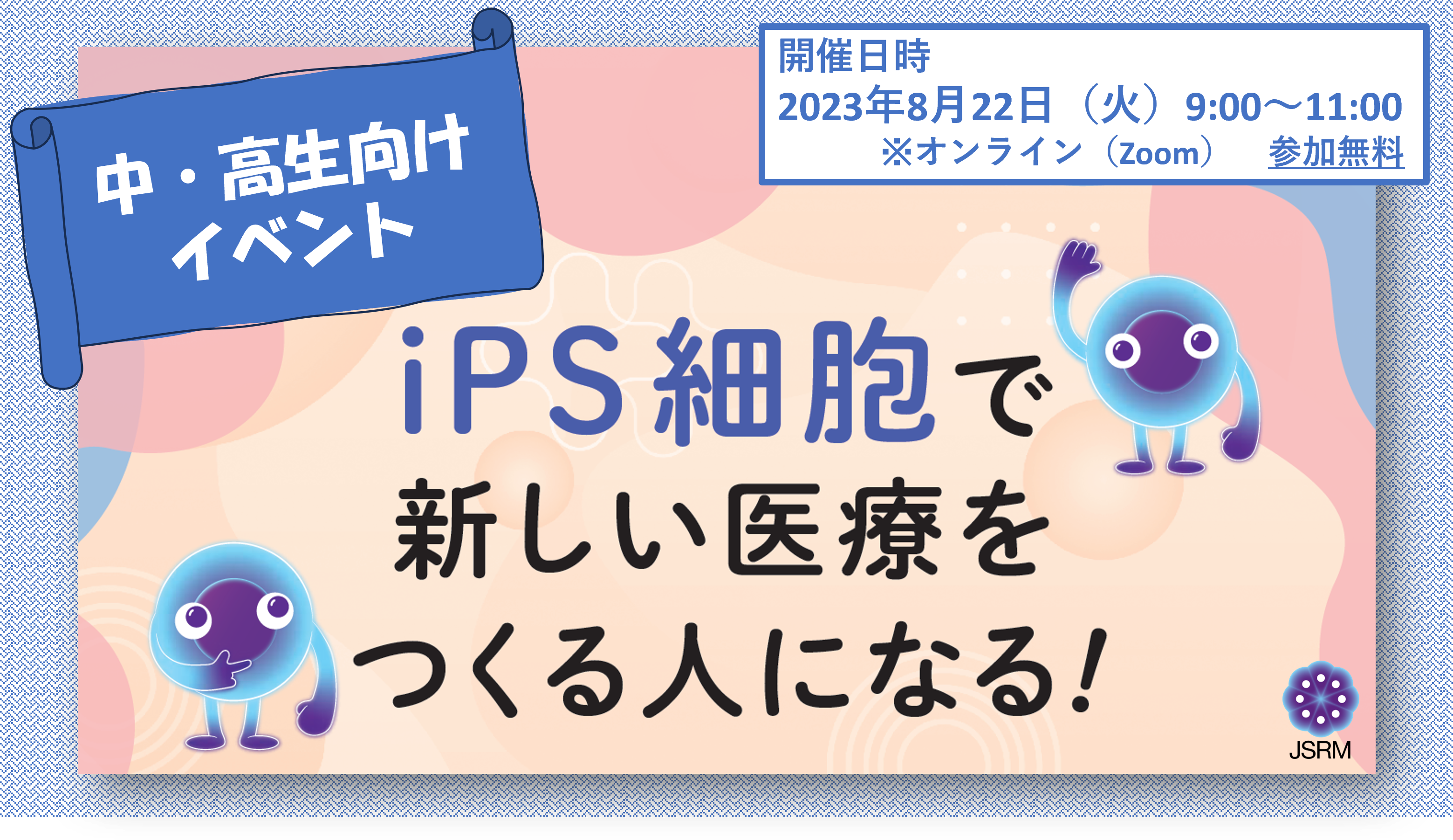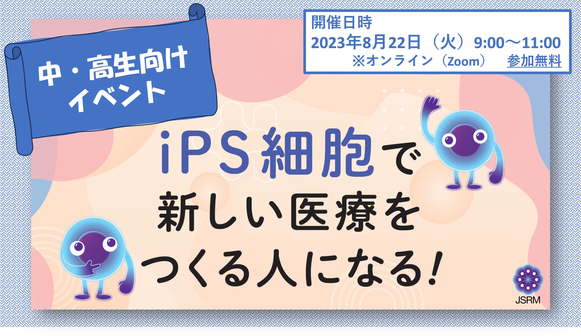 8/22(火)開催 中・高生向けイベント「iPS細胞で新しい医療をつくる人になる!」