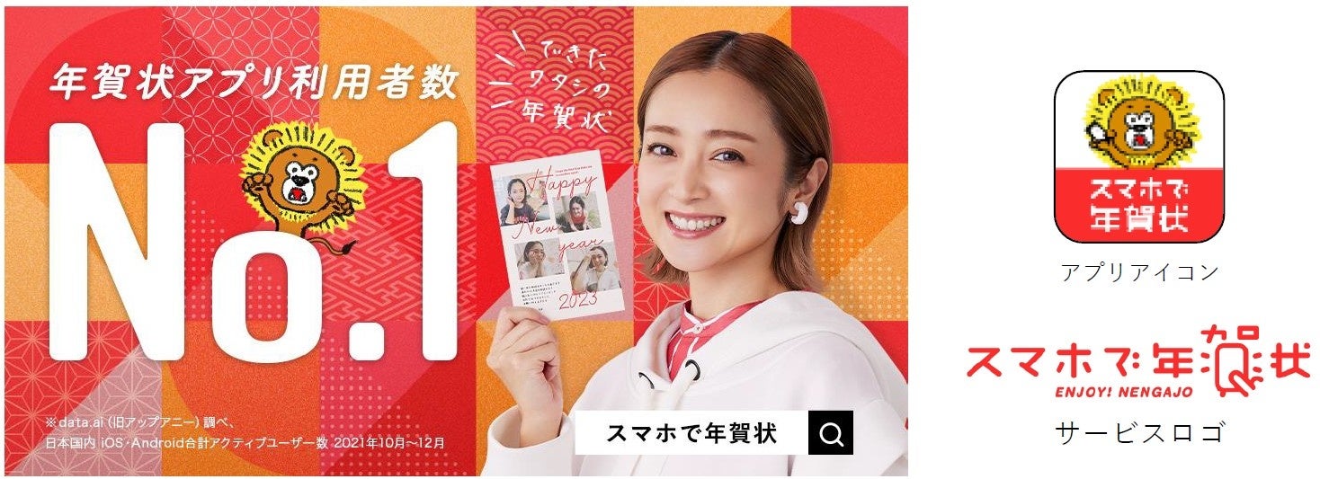 「スマホで年賀状」は、年賀状の作成から印刷、配送まで年賀状づくりのすべてがカンタンにできるスマートフォンアプリです。2012年版から2022年版の11年間で累計600万ダウンロードを達成。スマホひとつでカンタンに作れる点が支持されており、購入者の8割強が女性、中でも特にママ層からの人気が高い年賀状作成アプリの決定版です。