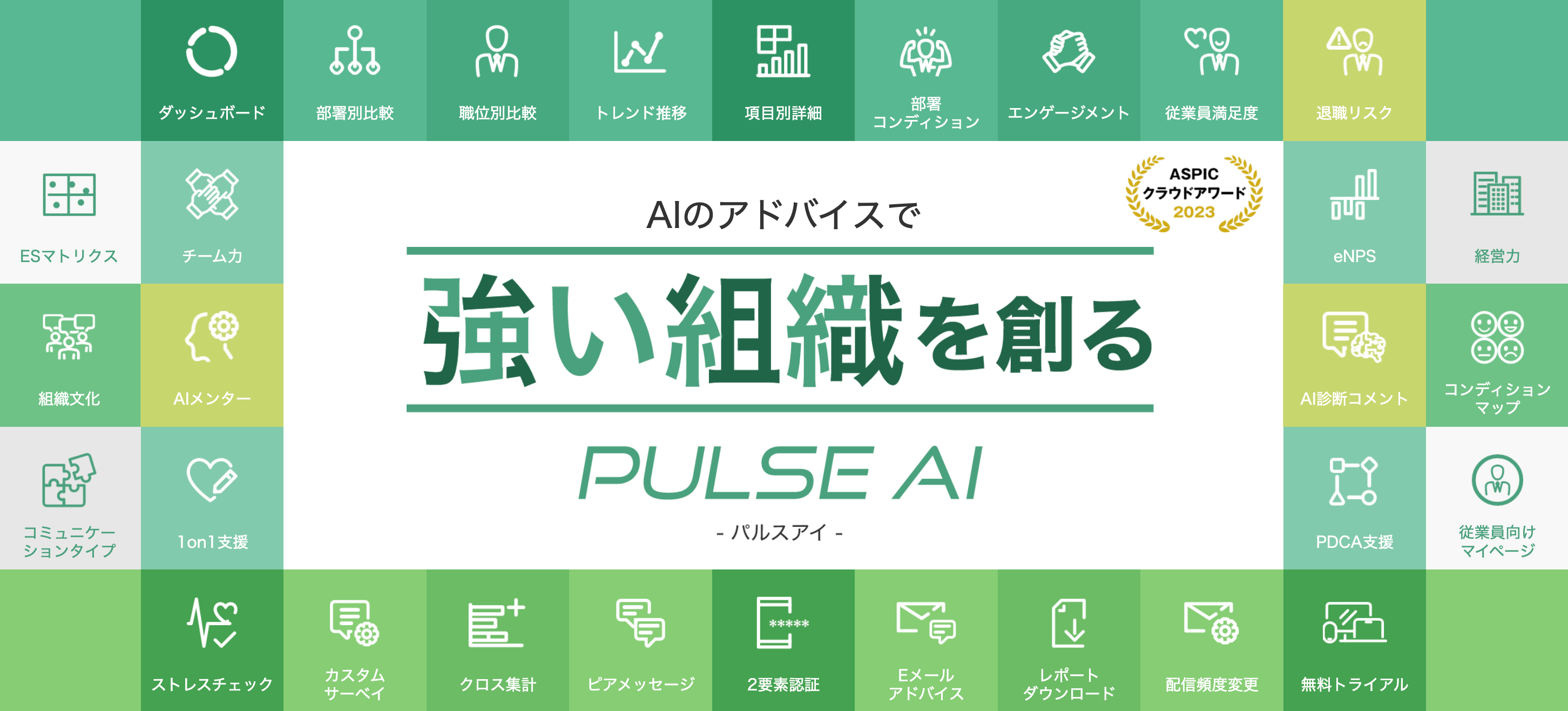 従業員エンゲージメントサーベイ「パルスアイ」が、第17回ASPICクラウドアワード2023 AI部門にて「経営改革貢献賞」を受賞