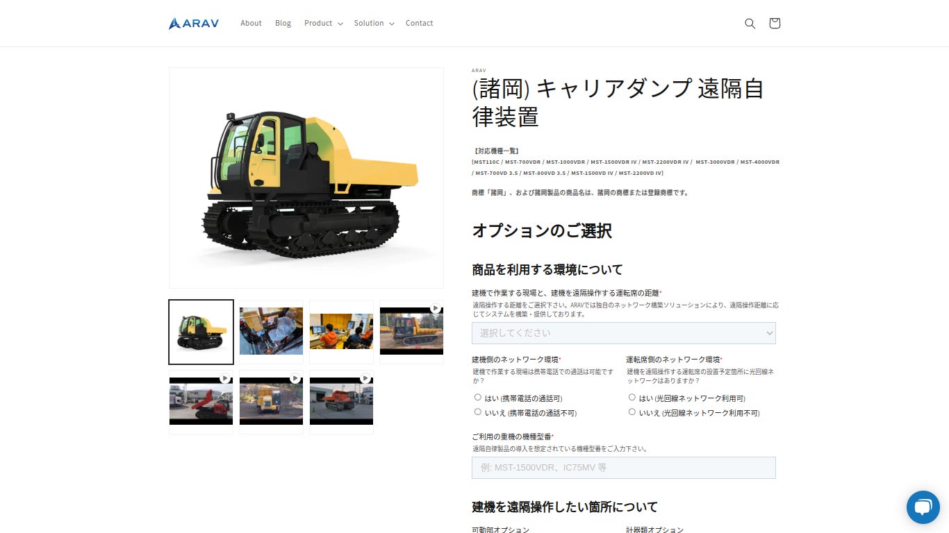 国内初、建機の遠隔自律装置の発注プラットフォーム shop.arav.jp をオープン。468機種の建機に対応。