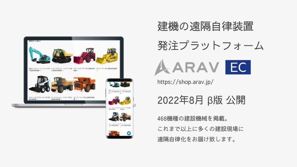 建設現場のDX・自動化を目指す東京大学発スタートアップのARAV株式会社(本社:東京都文京区本郷)は、建設機械に後付けで搭載できる遠隔自律装置の見積り注文が可能なECサイトのβ版を公開致しました。