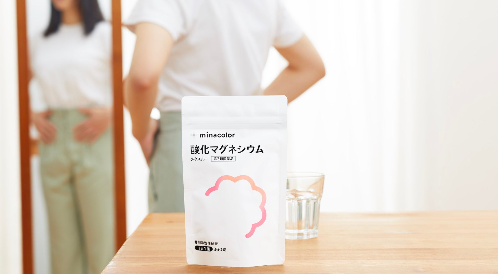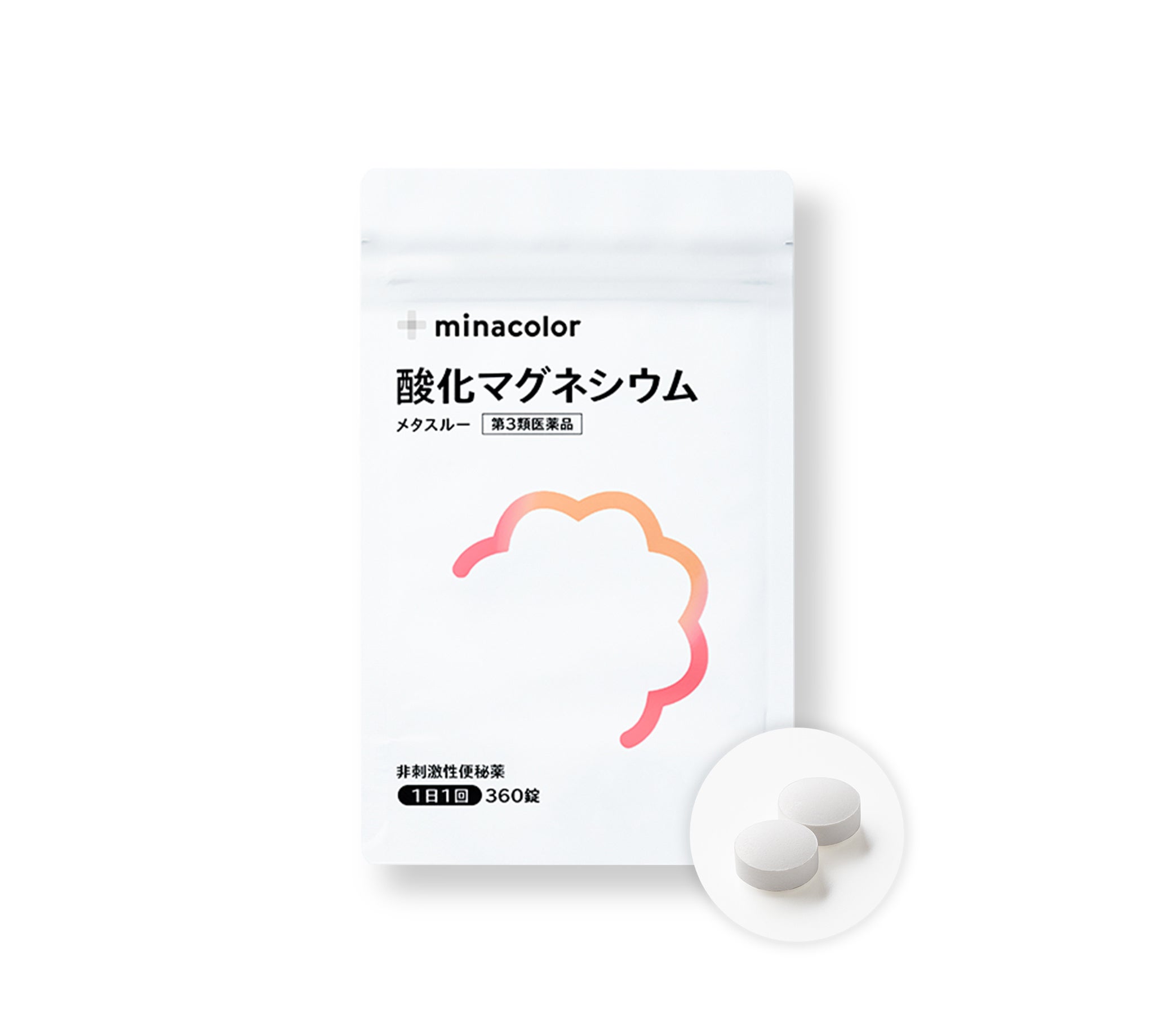 ミナカラの「メタスルー」は、酸化マグネシウムが承認基準最大量配合(※1)されています。連続使用しても腸を直接刺激しないためクセになりにくく、家族で使える便秘薬です。用法・用量が1回3-6錠(大人の場合)のため、自分の体質に合わせて量も調整でき、様子を見ながら使用をすることができます。また一見、便秘薬とはわかりにくいシンプルなパッケージを採用することで恥ずかしさを軽減する工夫をいたしました。