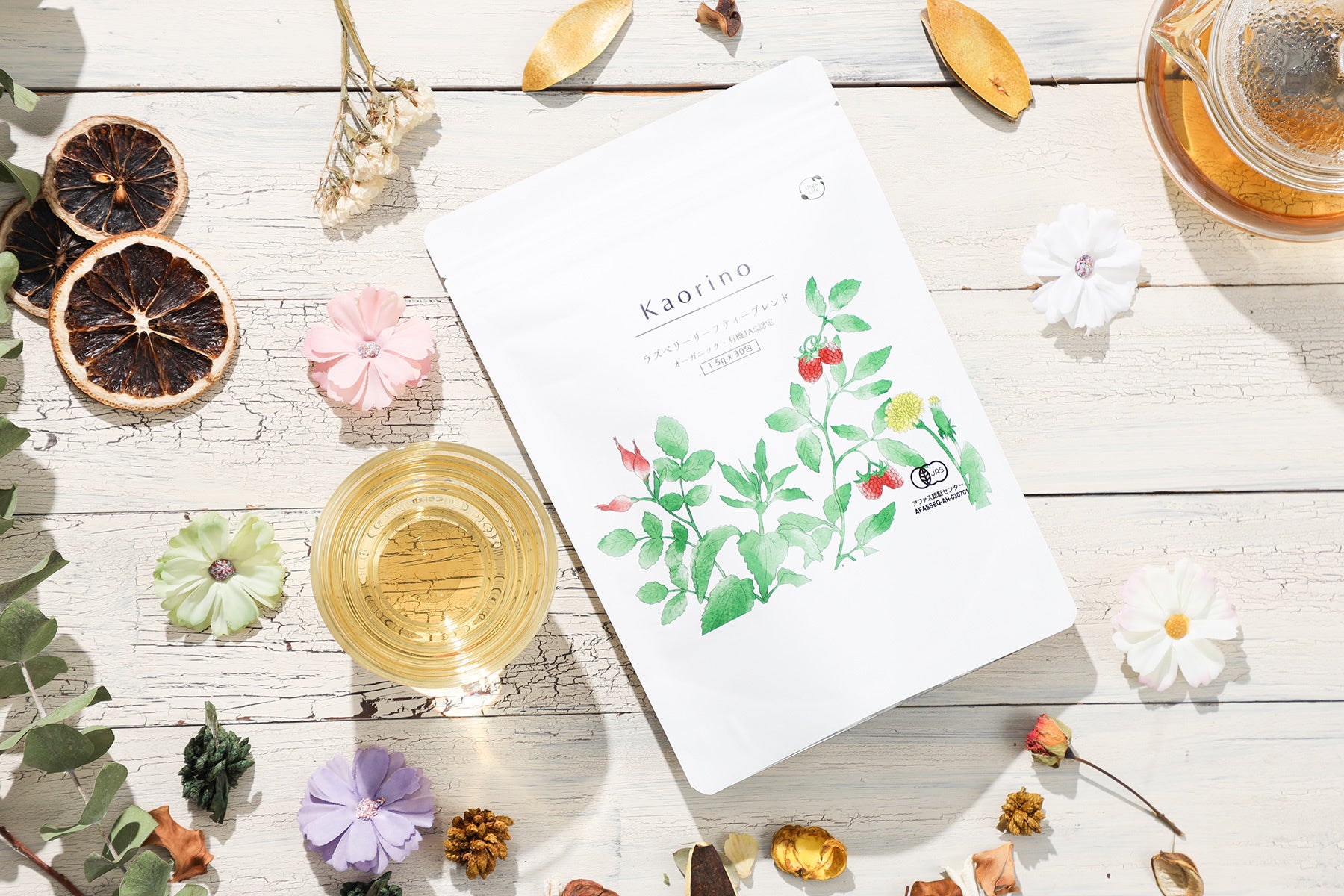 Kaorinoの有機ラズベリーリーフティーブレンドは、有機JAS認定の茶葉を使用し、無農薬栽培で育てられたラズベリーリーフをメインに配合しています。