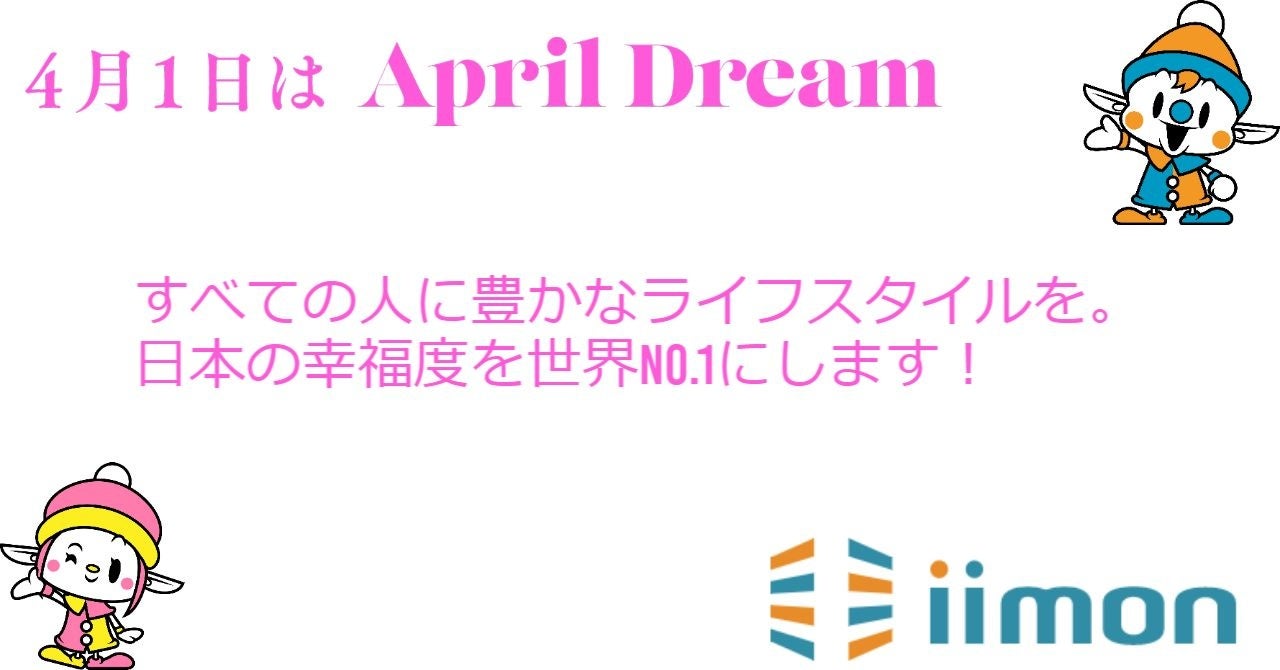 当社は、4月1日を夢を発信する日にしようとするApril Dreamに賛同しています。このプレスリリースは「株式会社iimon」の夢です。