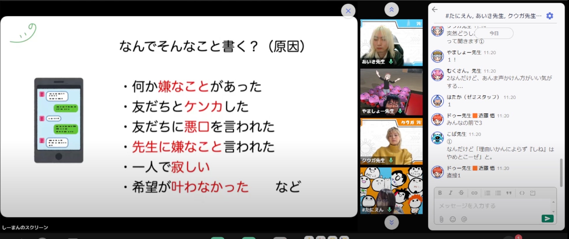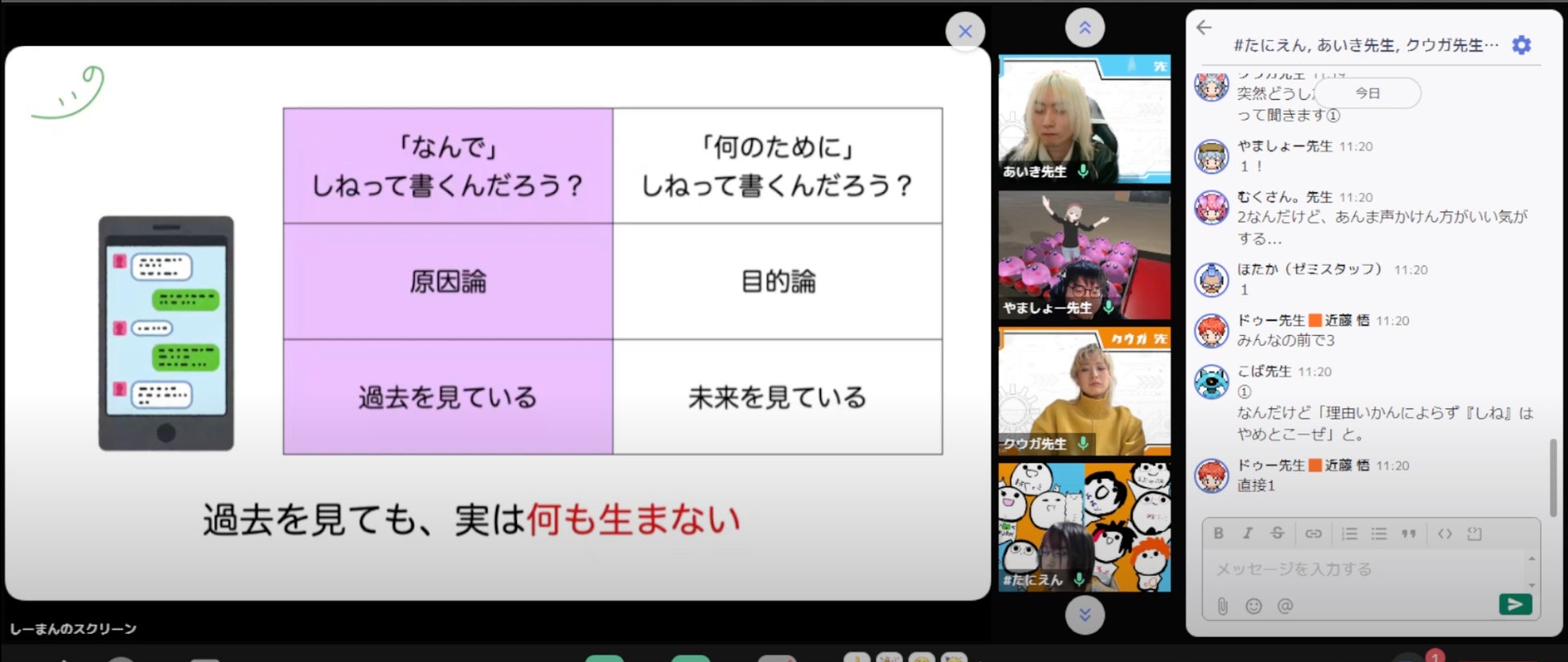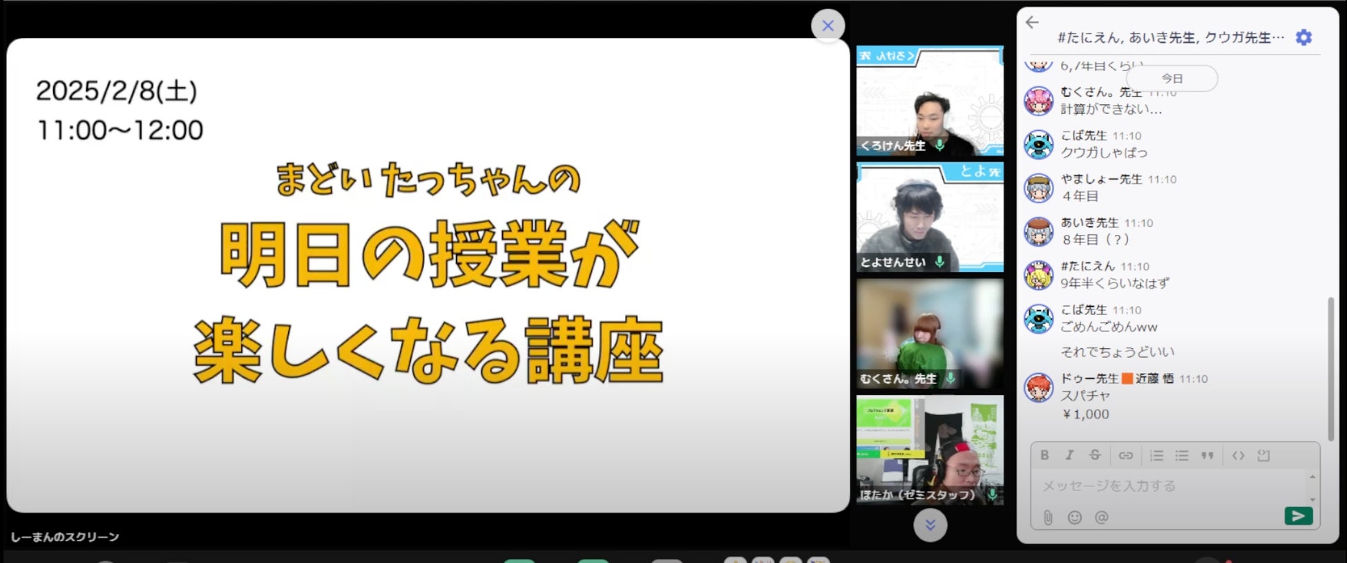 講演の後、参加者同士でディスカッションを行い、日々の指導における悩みや課題を共有しました。特に、「生徒が思わぬ発言をしたときの対応」「授業中の生徒の集中力を保つ工夫」「指導者自身のメンタルマネジメント」などが議論され、それぞれの経験やアイデアが交換されました。