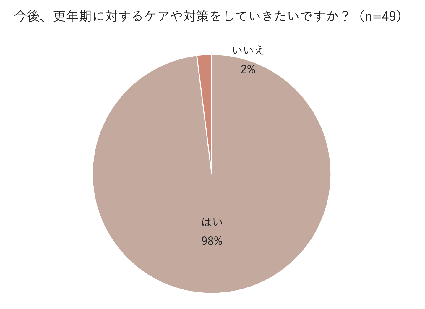 98%が今後更年期に対するケアや対策をしていきたいと考えている