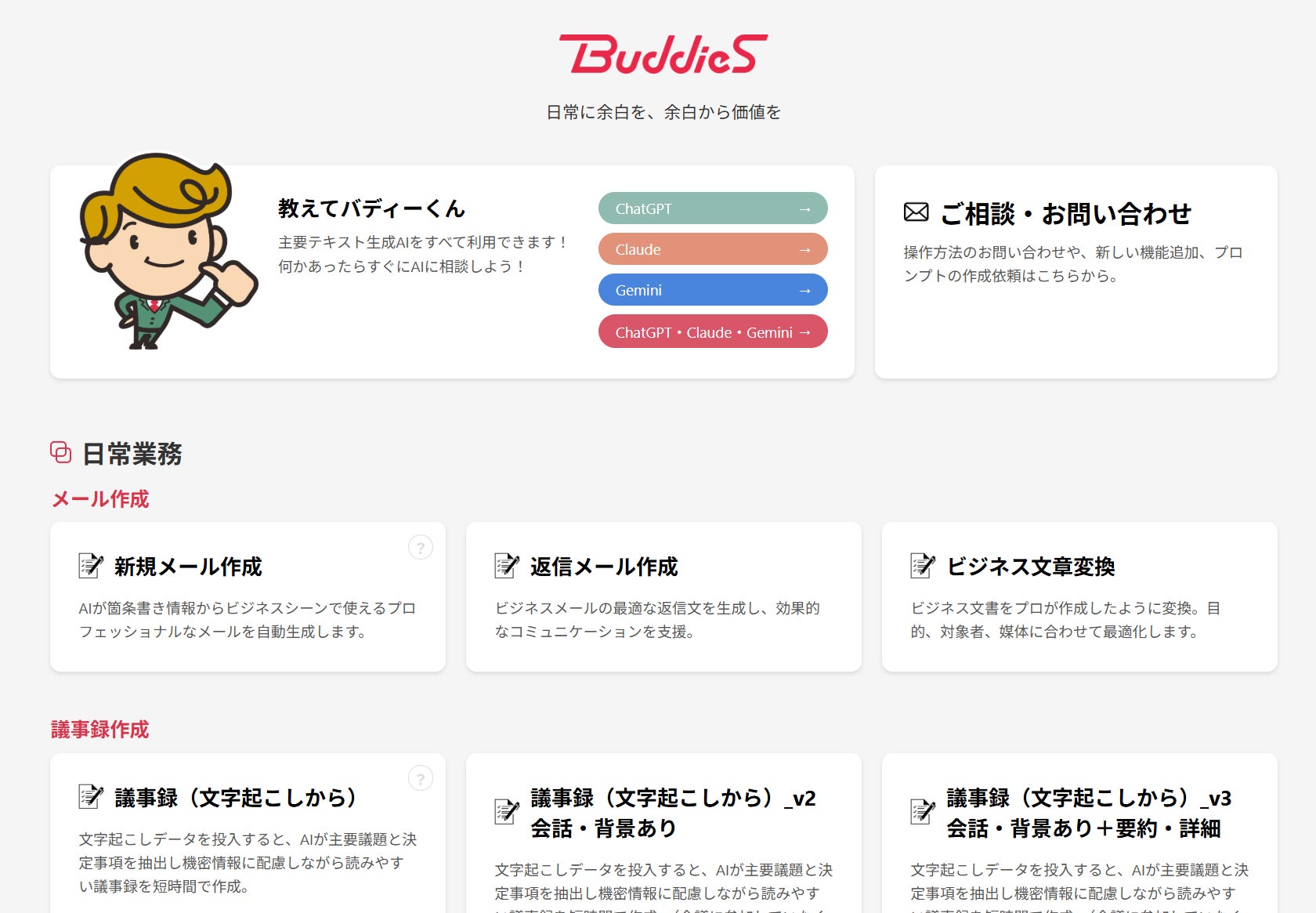 BuddieSの詳細は公式Webサイト(https://ai-buddies.jp/)をご覧ください。